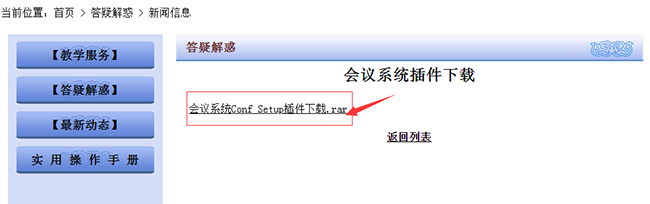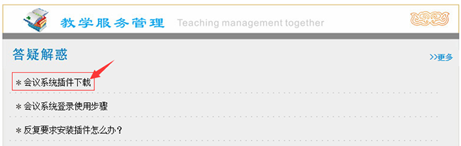 2.下载会议插件,下拉至【教学服务管理】栏目,点击“会议系统插件下载”